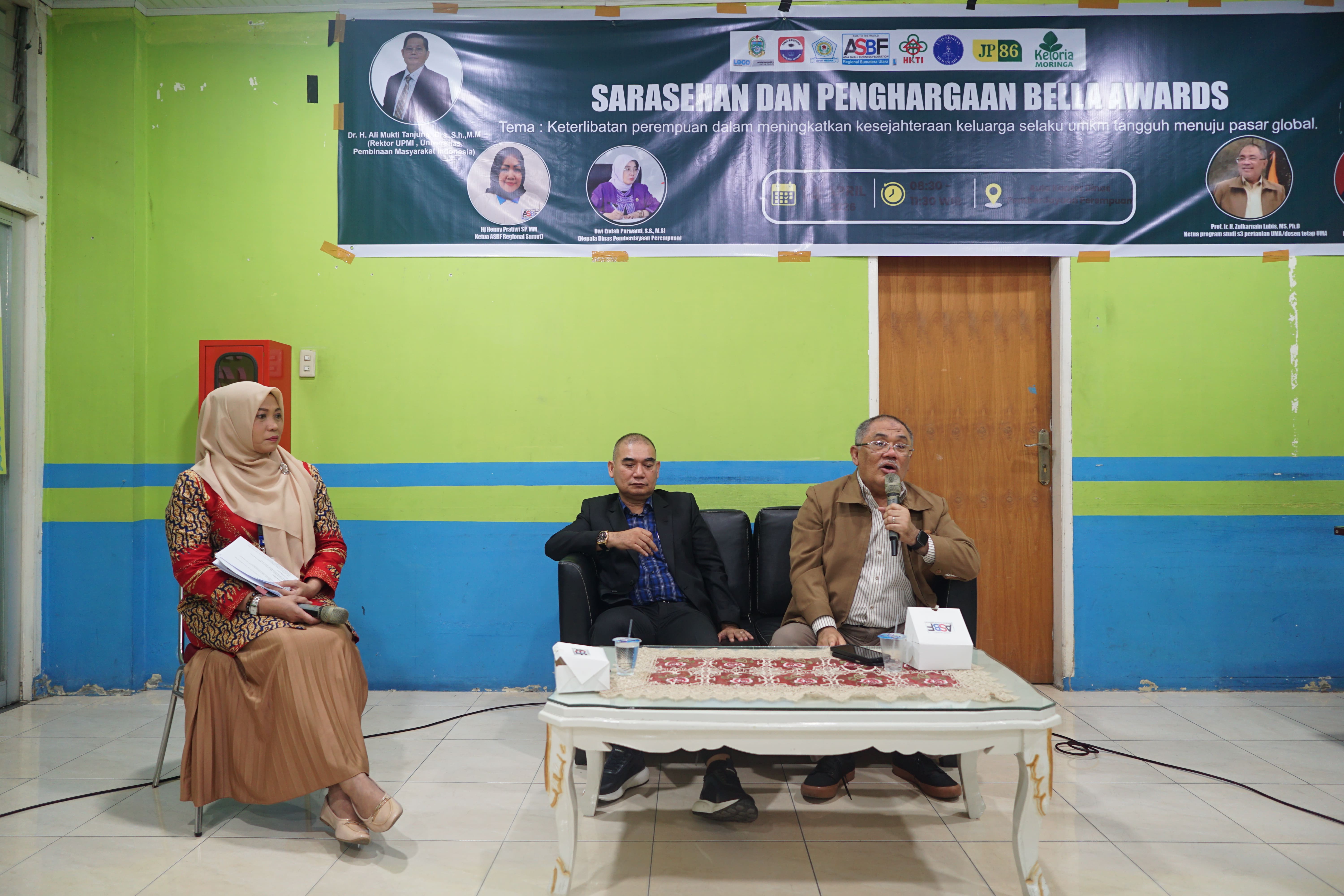 Acara yang mengusung tema “Keterlibatan Perempuan Dalam Meningkatkan Kesejahteraan Keluarga Selaku UMKM Tangguh Menuju Pasar Global” ini dihadiri oleh puluhan pelaku industri rumahan, perwakilan perempuan pemilik UMKM, perwakilan ASBF, serta para pemenang BELLA Award tingkat Sumatera Utara.